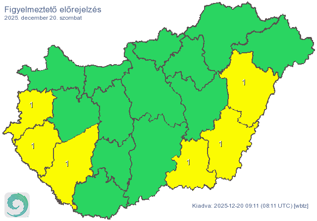 Ma napközben a ködös területeken csak lassan javulnak a látási viszonyok. Estétől újból nagyobb területen sűrűsödhet a köd. Kiterjedt sűrű ködre nagyobb esély a délkeleti, keleti országrészben, illetve Dunántúl egyes részein van. A nyugati határ közelében ónos szitálás kialakulhat.